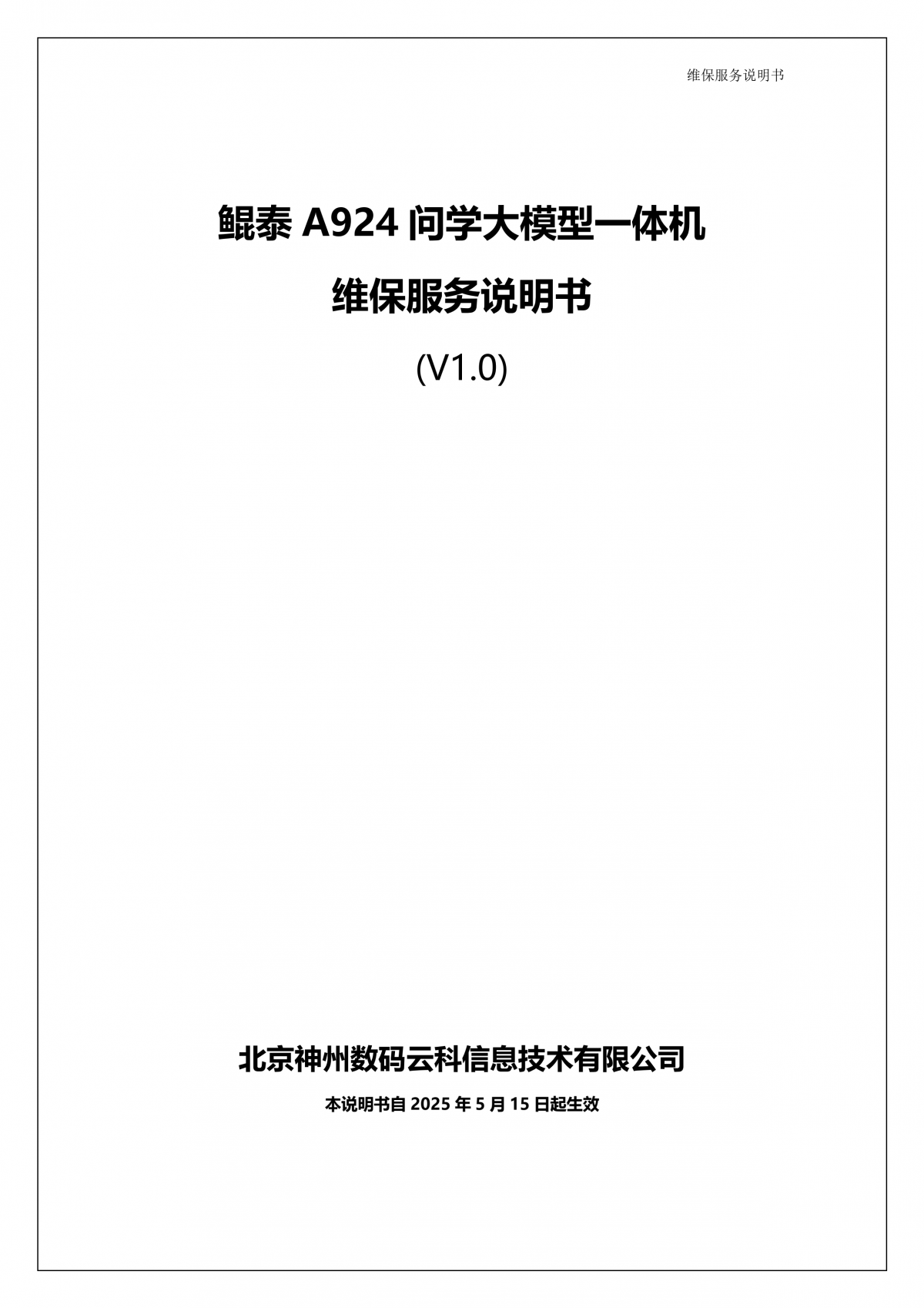 Ezpay钱包A924 问学大模型一体机维保服务说明书_V1.0